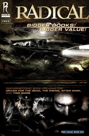 For FCBD 2010, fans can read the first 8 pages of 4 incredible titles showcasing Radical's innovative "Bigger Books! Bigger Value!" format. Wesley Snipes and director Antoine Fuqua (Training Day) join writer Peter Milligan and artist Jeff Nentrup for the sci-fi saga, After Dark; Jonah Hex's Jimmy Palmiotti and Justin Gray deliver Time Bomb, featuring art by comics legend Paul Gulacy; Driver for the Dead will keep your heart racing with a tale of action, horror and voodoo from writer John Heffernan (Snakes on a Plane) and artist Clint Langley (Sláine); and finally, Radical presents The Rising, from creator/writer E. Max Frye (Band of Brothers) and artist J.P. Targete (Pixar's John Carter of Mars)! 32pgs, FCPublisher: RADICAL PUBLISHING